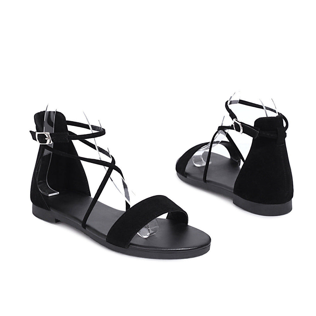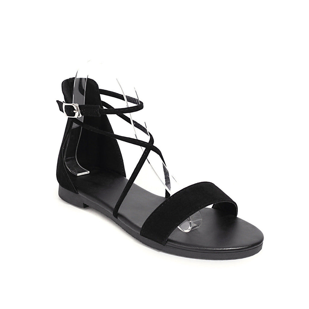 Flat Dress Sandals Summer Square Heel Solid Color Buckle Hollowed Leisure Sandals for Women