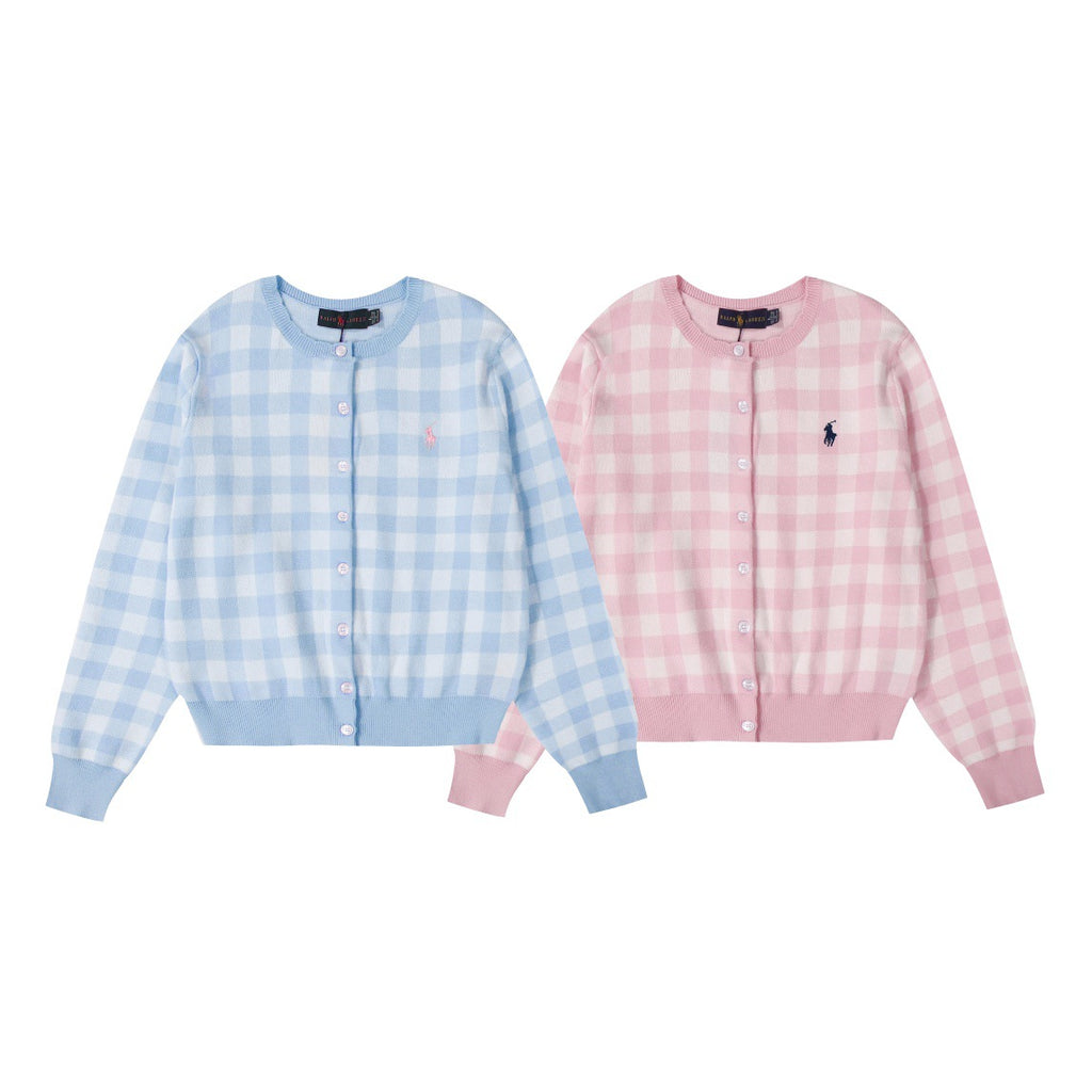 Ralph Lauren Knitted sweaters RL Pony Embroidered Checked Knitted Cardigan Crew Neck