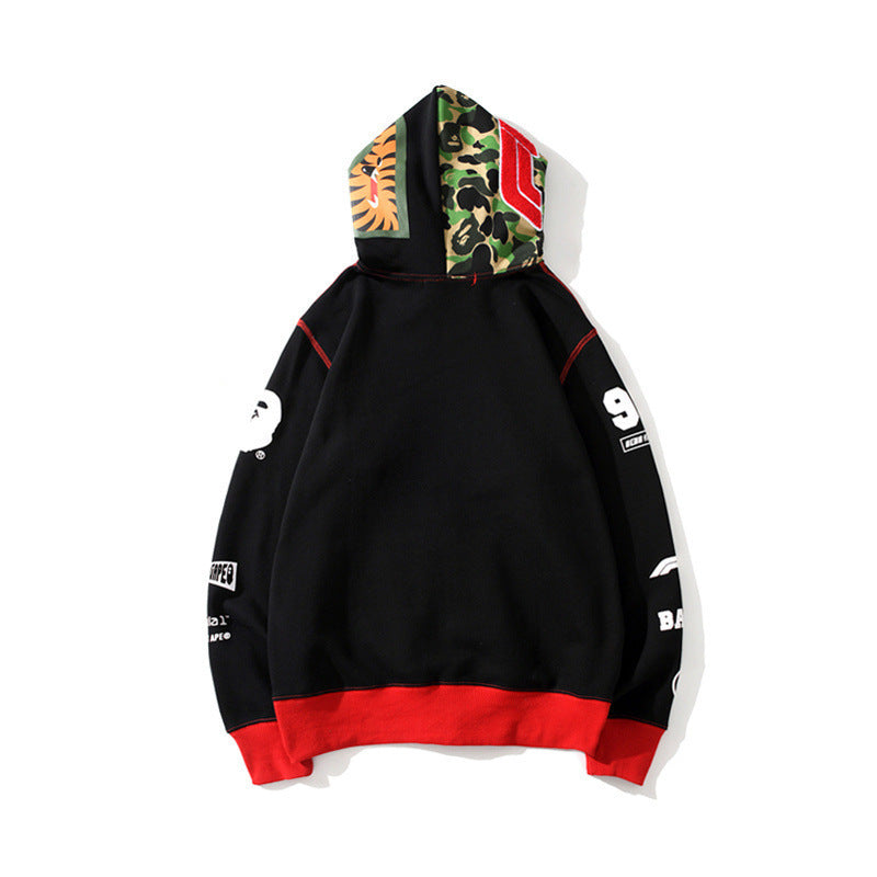 Shark Print Hoodie Camouflage Color Matching Men'S And Women'S Zipper Sweater Jacket