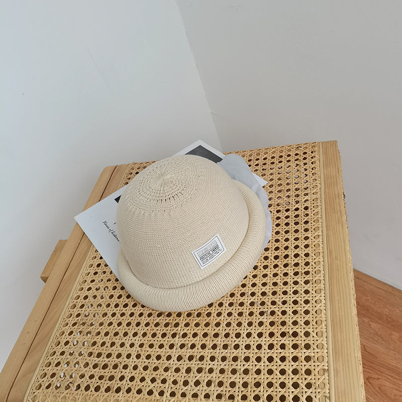 Beanies Solid Color Curling Dome Bucket Hat Women's Spring and Summer Cotton and Linen Painter Cap
