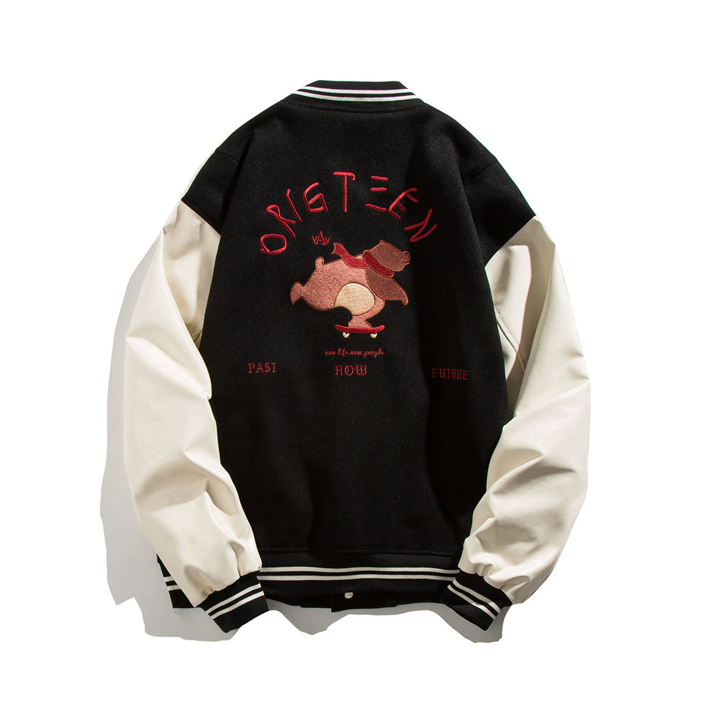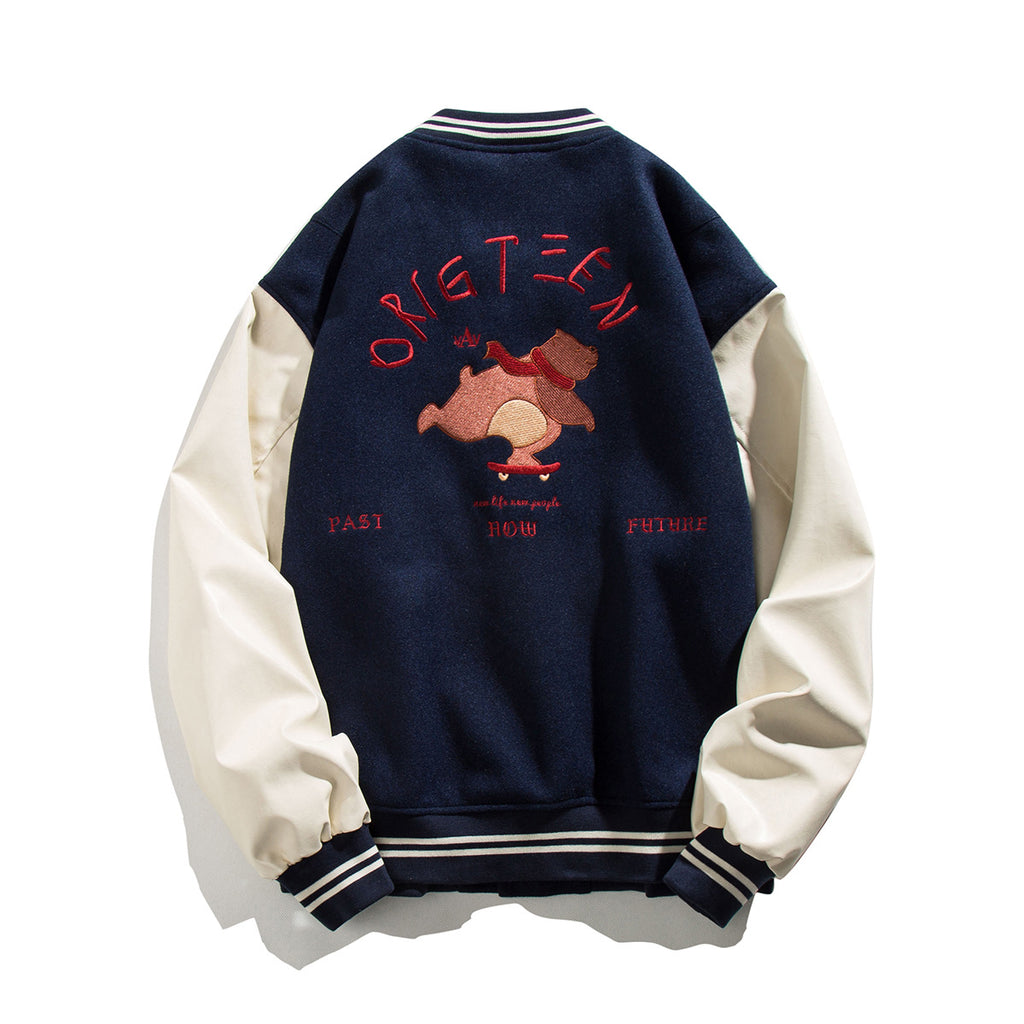 Blue Varsity Jacket Autumn Letters Printed Baseball Uniform