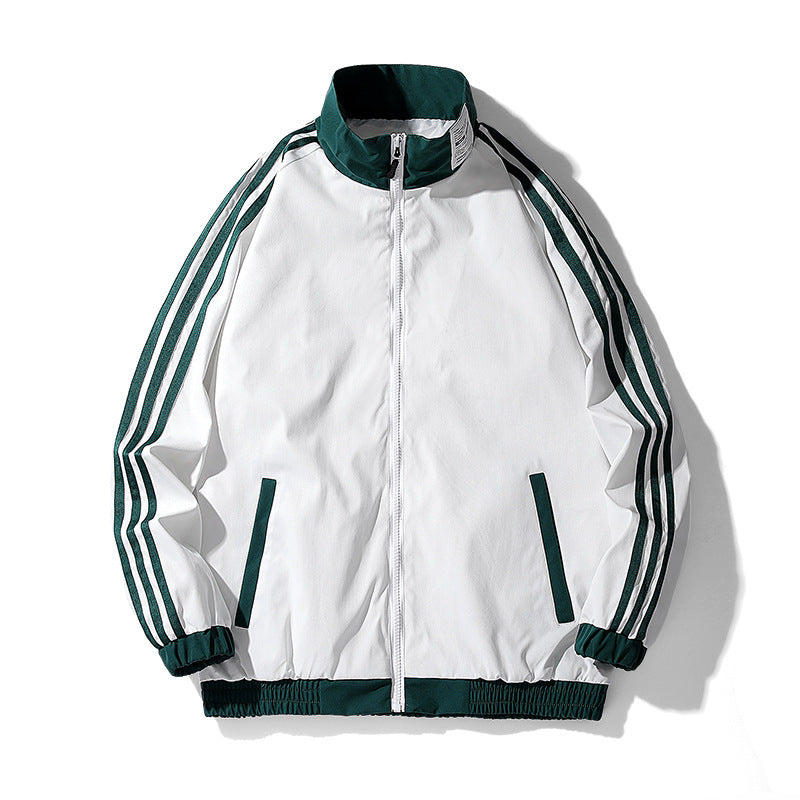 Blue Varsity Jacket Spring and Autumn Men's Jacket Striped Jacket Three Bars Clip Jacket Baseball Uniform