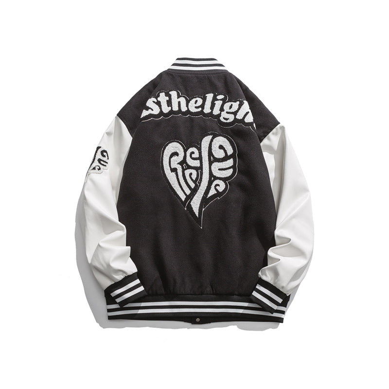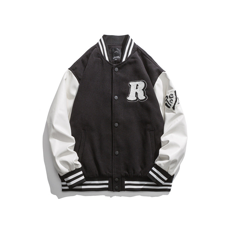 Blue Varsity Jacket Fall Color-Blocking Coat for Men Letter Print Embroidery Baseball Uniform Jacket