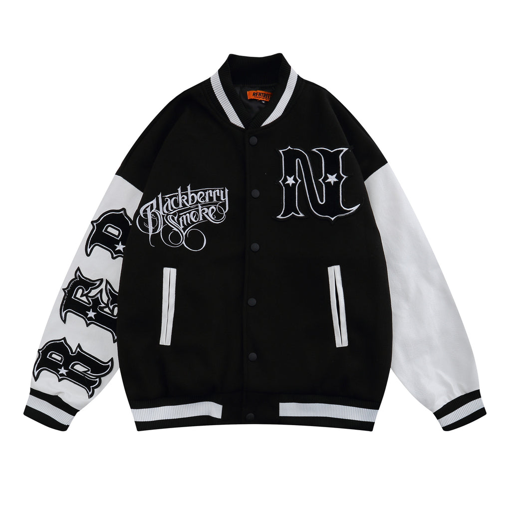 Blue Varsity Jacket Letter Badge Color Matching Color Contrast Personal Leisure Baseball Uniform Youth Handsome Leather Jacket Jacket