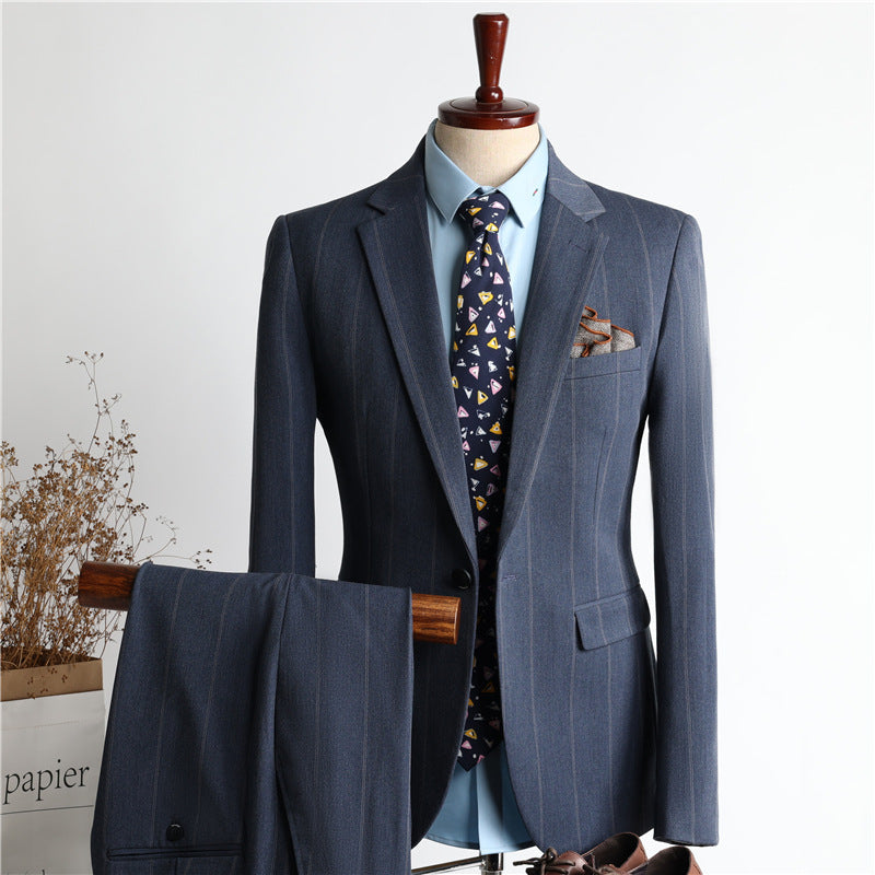 Bohemian Chic Wedding Guest Men Attire Suit Slim Fit Blue Three-Piece Set