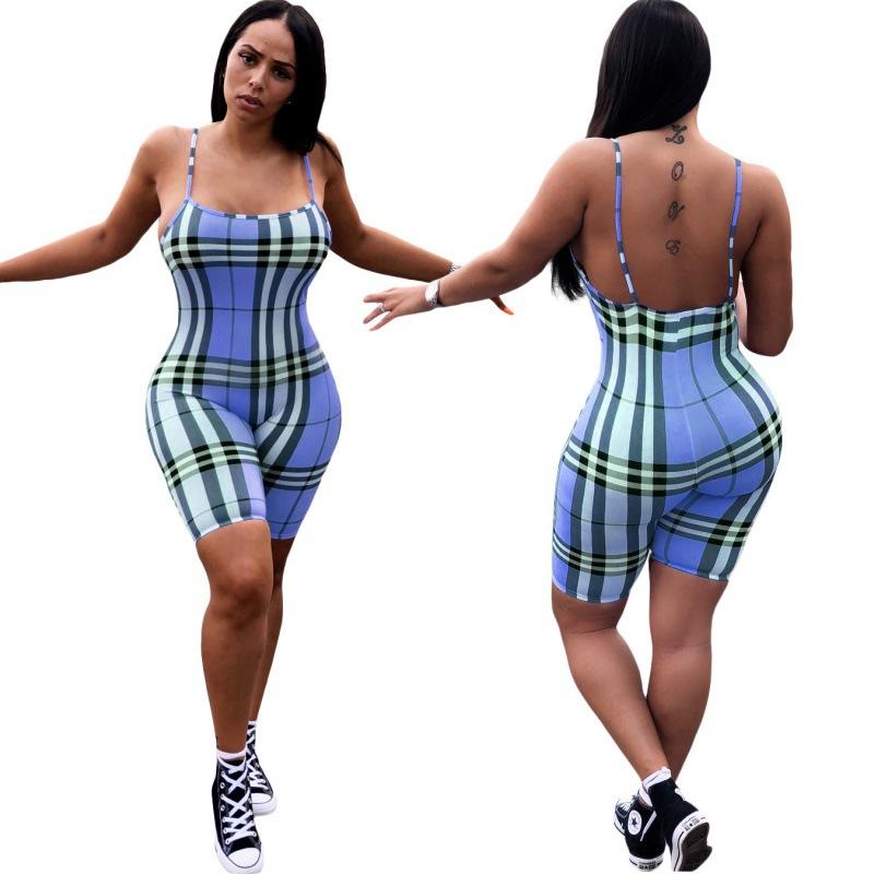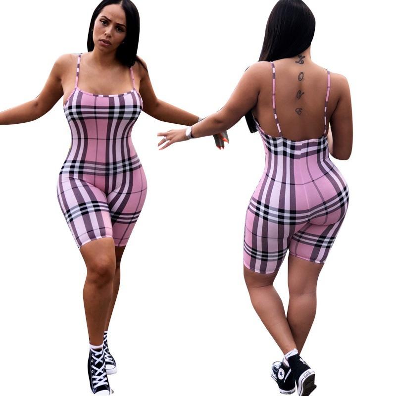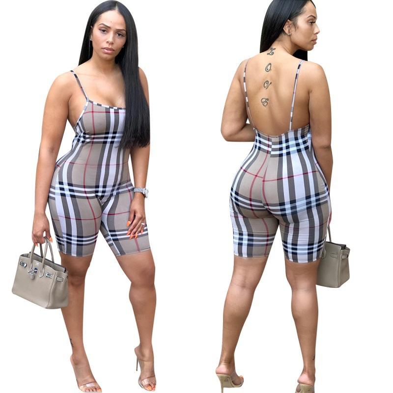 Women Plaid Catsuit Woman Checkered Jumpsuit Suspender Plaid Printed Casual Jumpsuit Jumpsuit