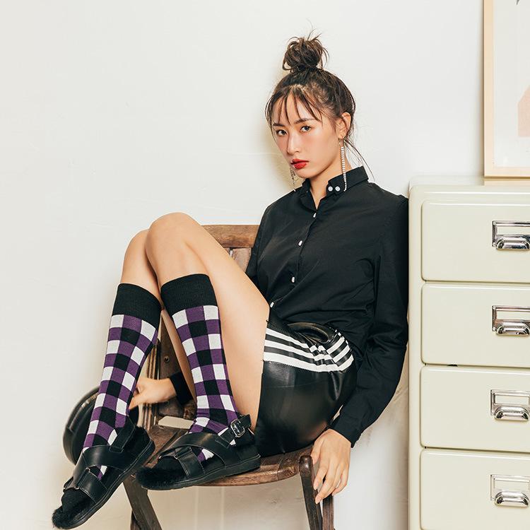 Plaid Calf Socks Knee Socks Ladies Loose Socks Calf Socks