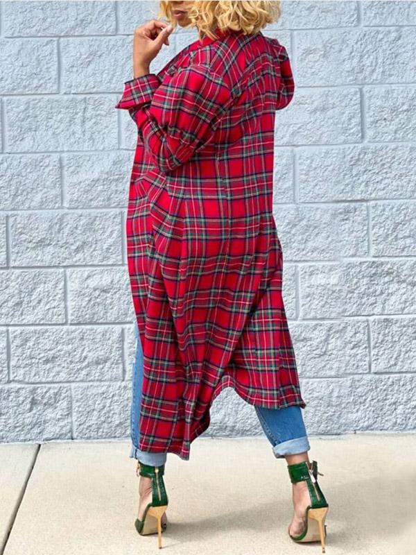 Women's Plaid Lapel Mid-Length Trench Coat