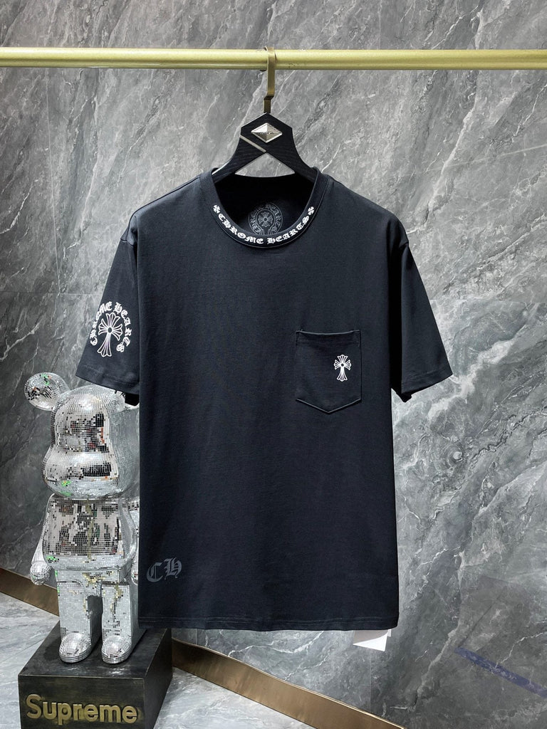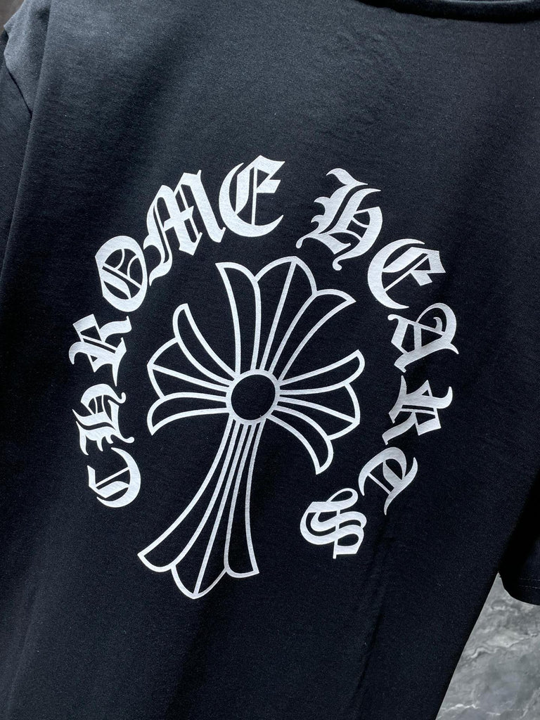 CHH Chrome Hearts T Shirts Letter Collar Letter Large Long Cross Short Sleeve T-shirt