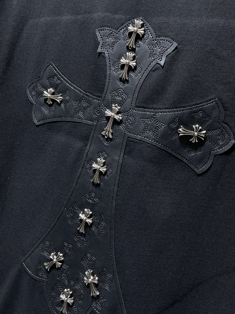 CHH Chrome Hearts T Shirts Letter Embroidered Leather Patchwork Short Sleeve T-shirt