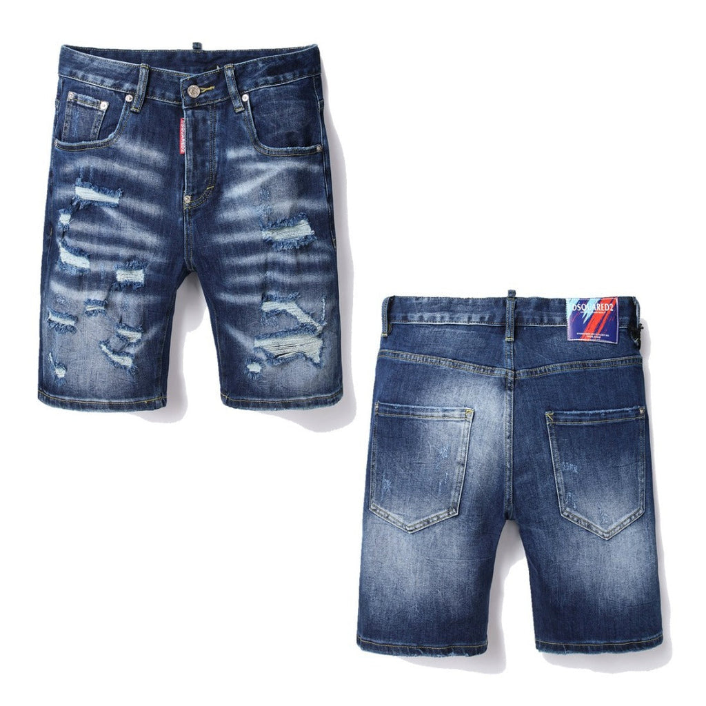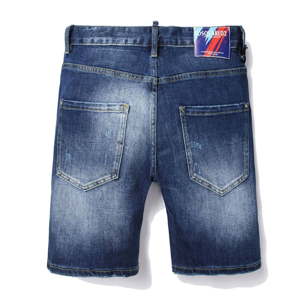 DSQ2 Short Jeans Ripped Patch Slim-fit Stretch Denim Shorts