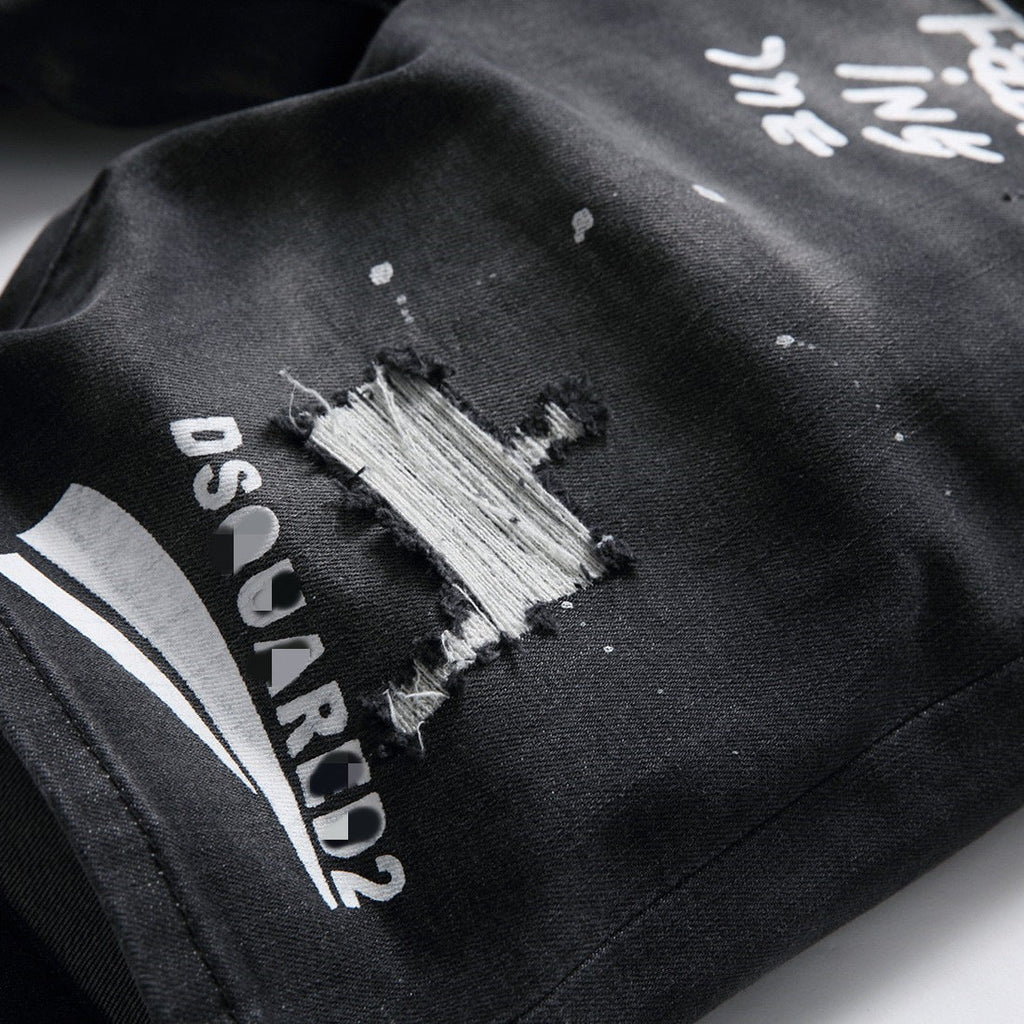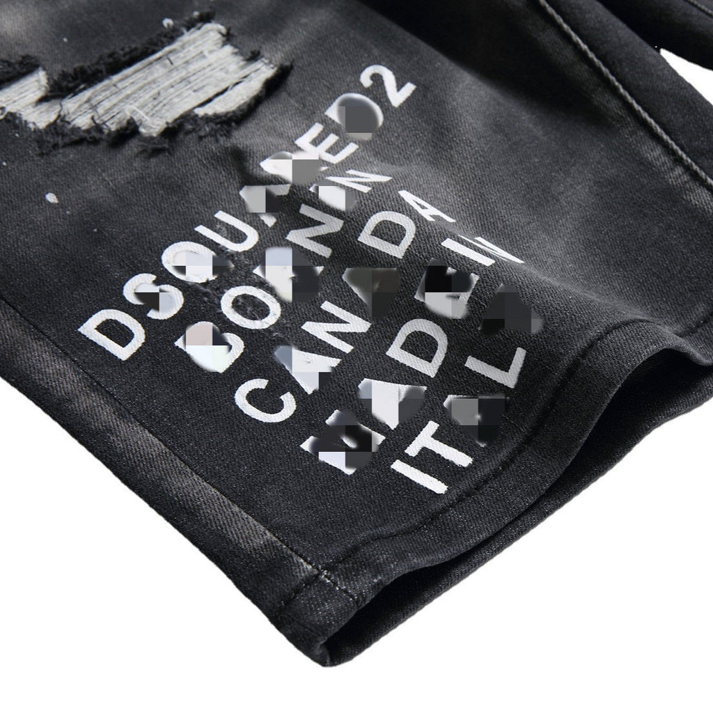 DSQ2 Short Jeans Ripped Patch Slim-fit Stretch Denim Shorts