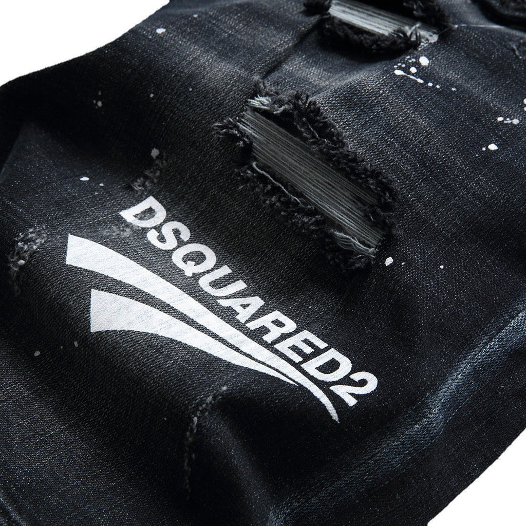 DSQ2 Short Jeans Ripped Patch Slim-fit Stretch Denim Shorts