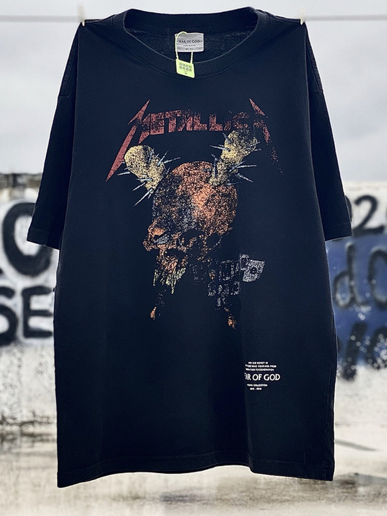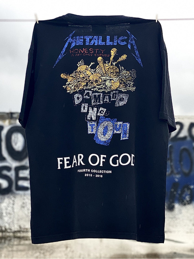 Mens Vintage T-Shirts FOG co-branded METALLICA Washed Black Tee