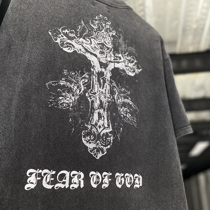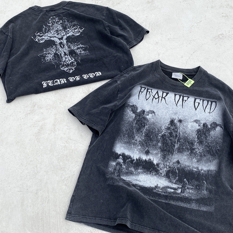 Men Vintage T-Shirts vintage Three Gods Judgment Redemption Short Sleeve FOG Washing Water Old Loose Casual