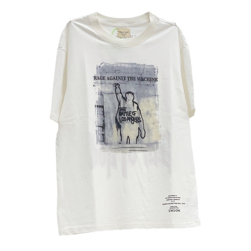 Mens Vintage T-Shirts fog Los Angeles battle short sleeve vintage wash do old loose