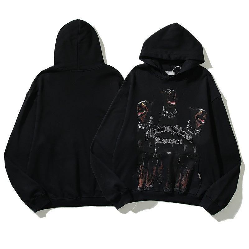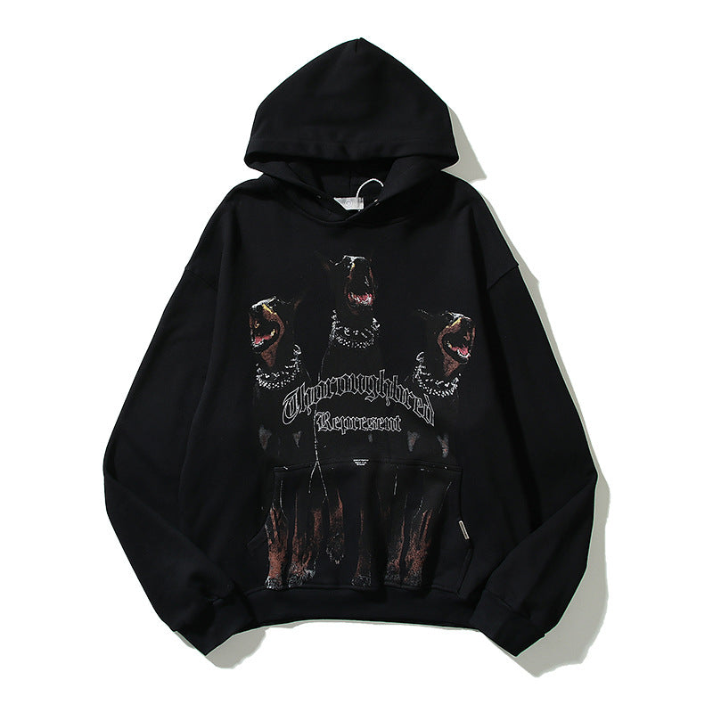 Kanye West Sunday Service Hoodie Autumn And Winter Doberman Pinscher Vintage Print Distressed Fog Hoodie