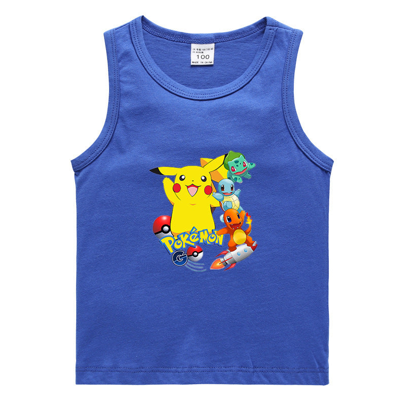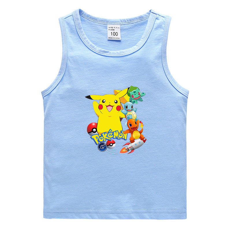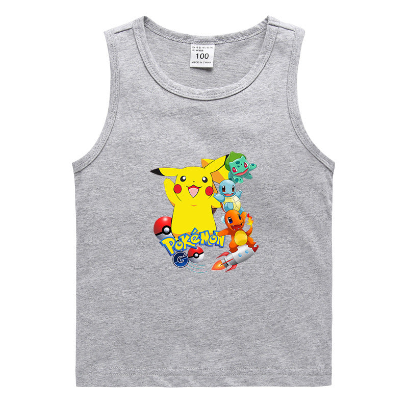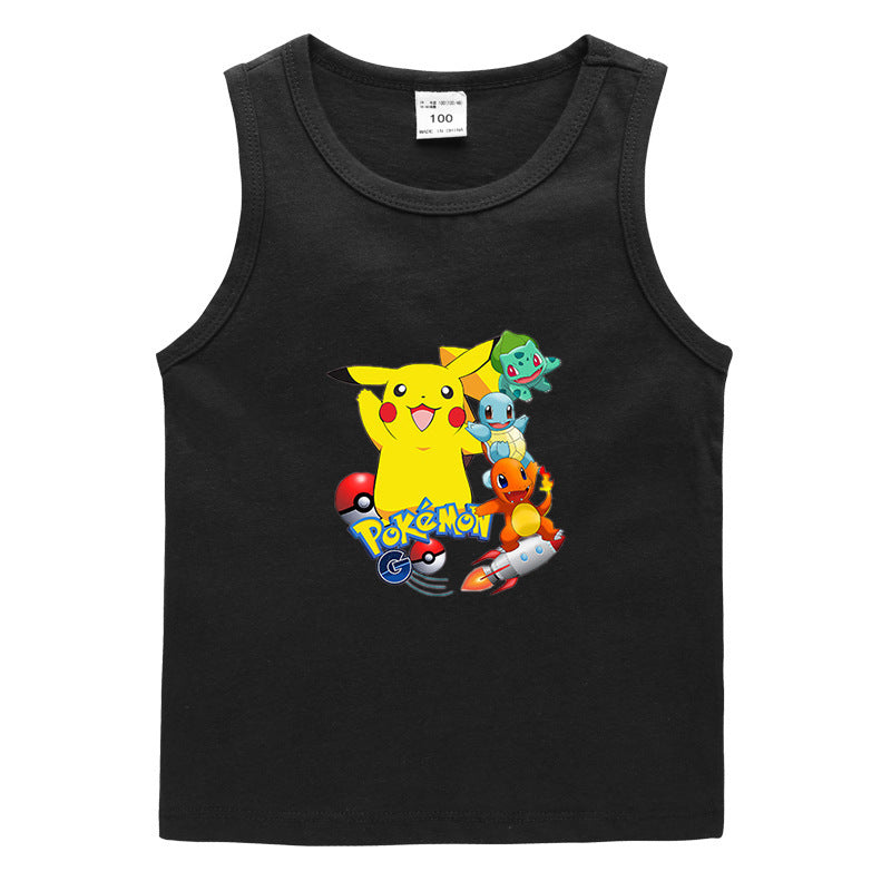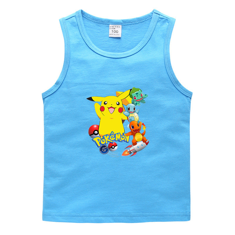Children Pokemon Pikachu T Shirt Cotton Leisure Sports Sweat-Absorbent Vest