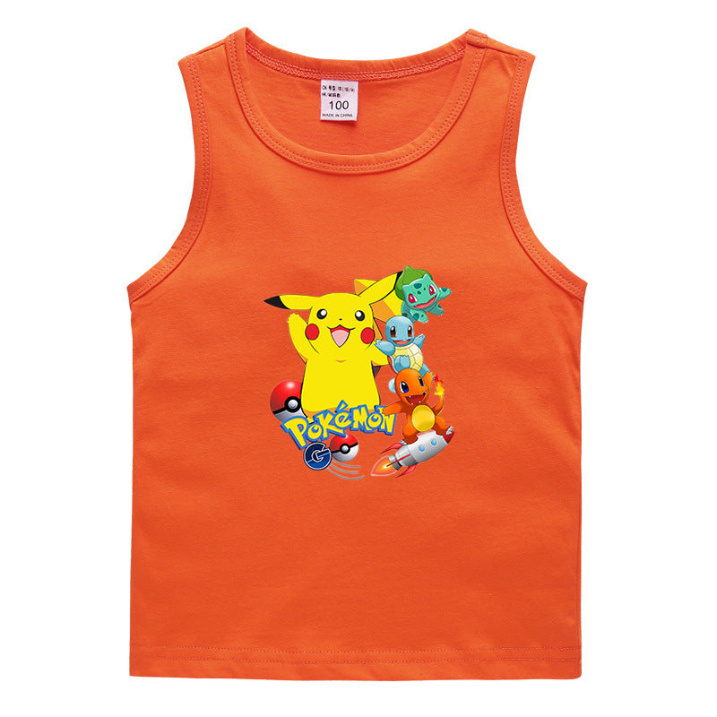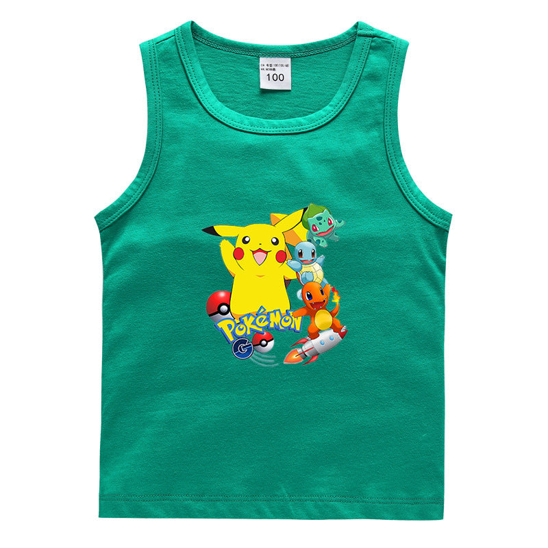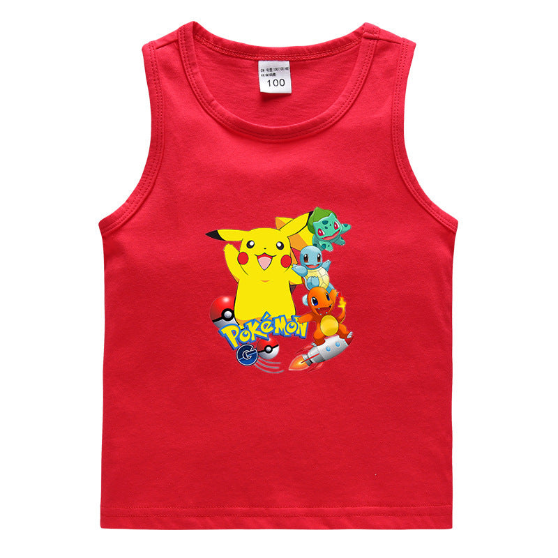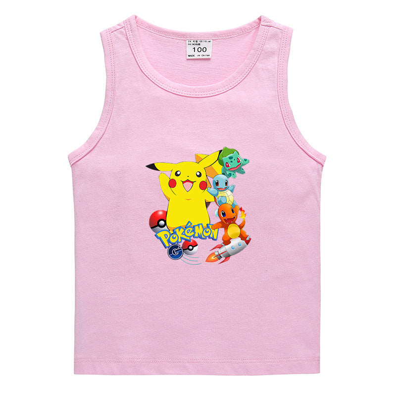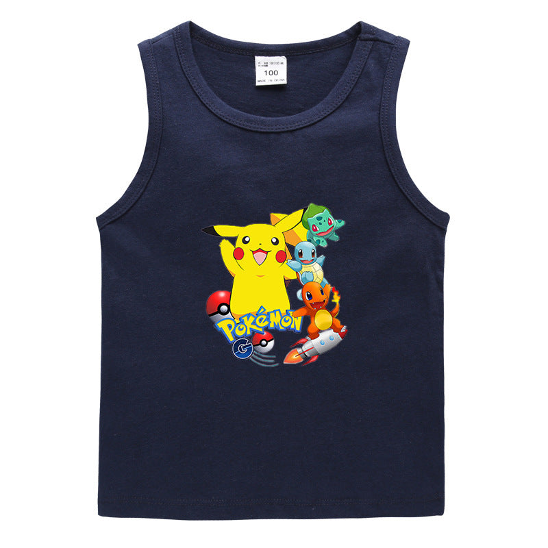 Children Pokemon Pikachu T Shirt Cotton Leisure Sports Sweat-Absorbent Vest