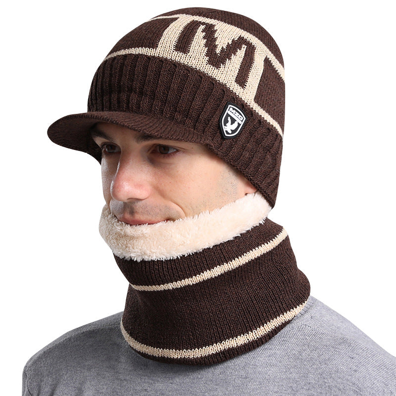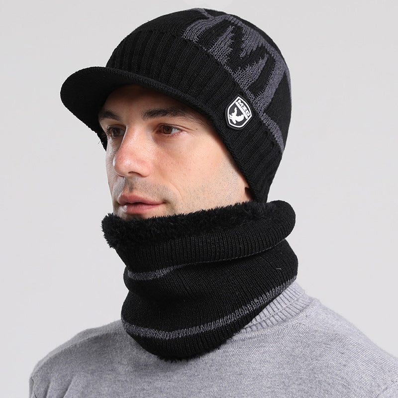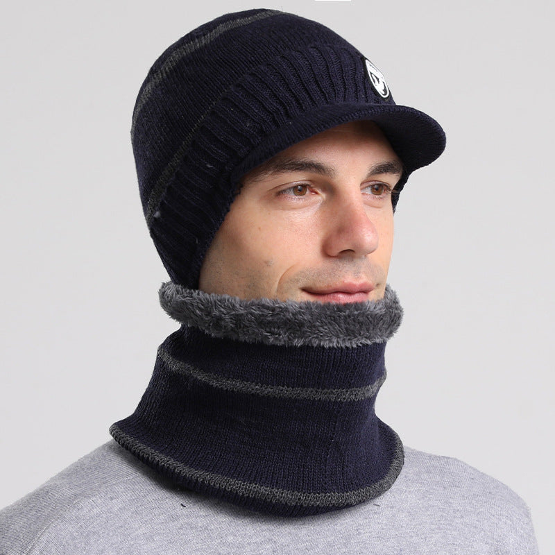 Men Winter Hats Men's Winter Fleece-Lined Thickened All-Matching Knitted Wool Hat