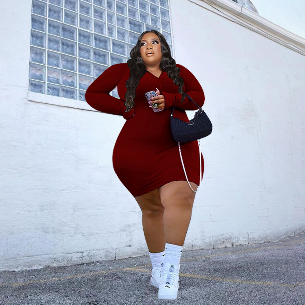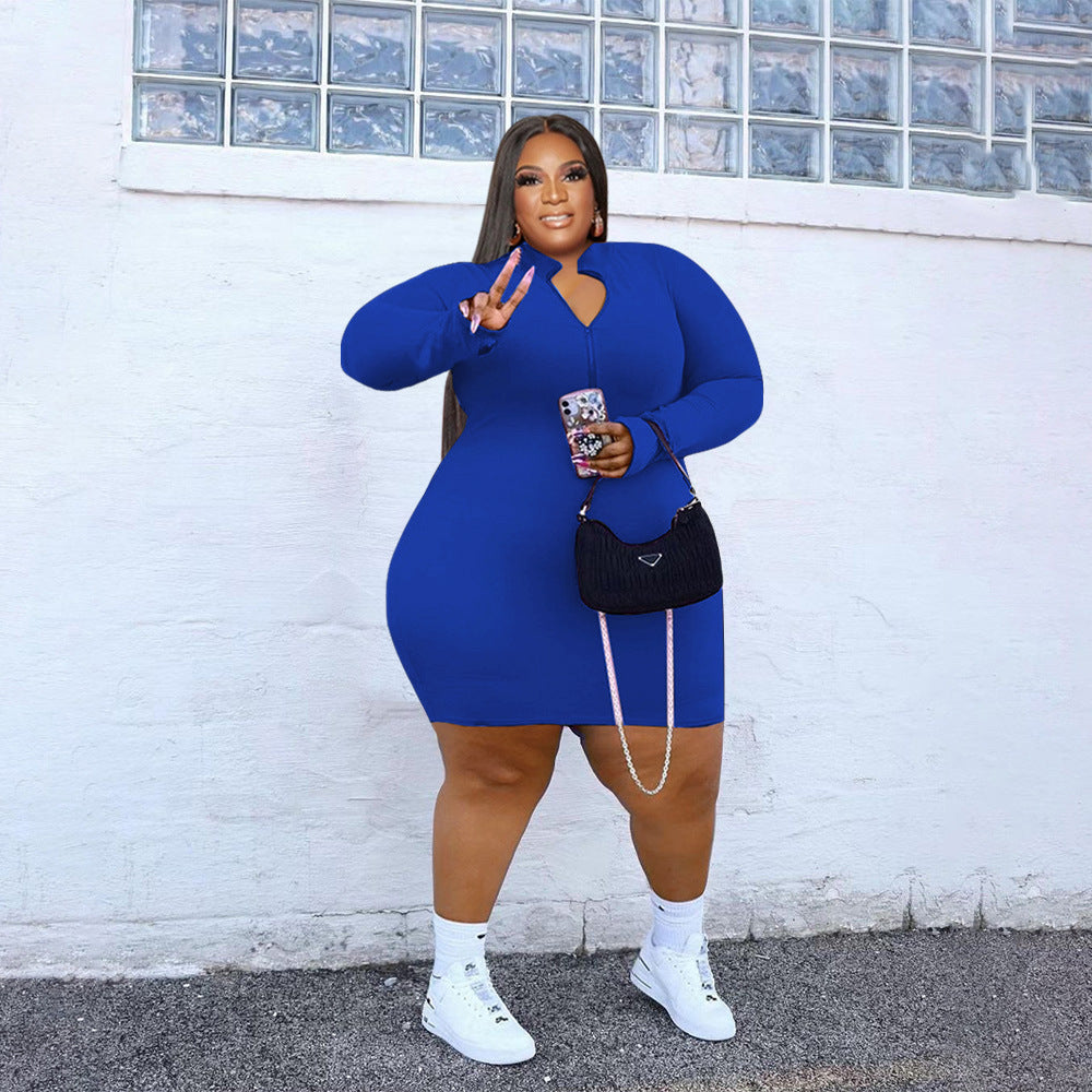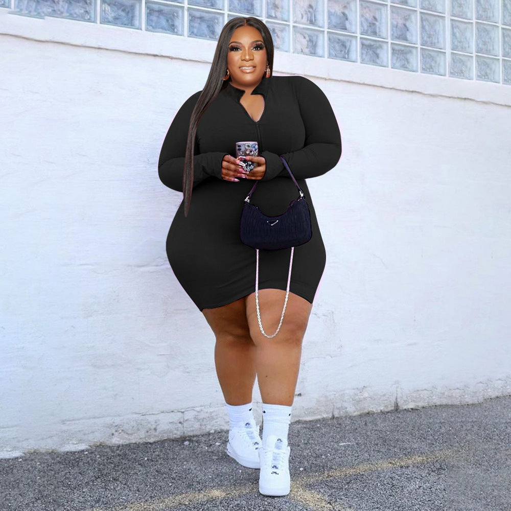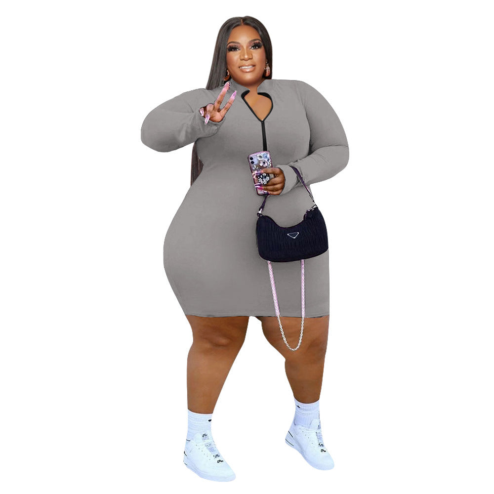 Nina Parker plus Size Dresses Solid Color Zipper Dress Casual