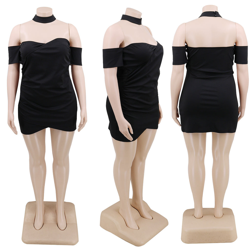 Nina Parker Black Dress off-the-Shoulder Large Size Dress Slim Fit Slimming