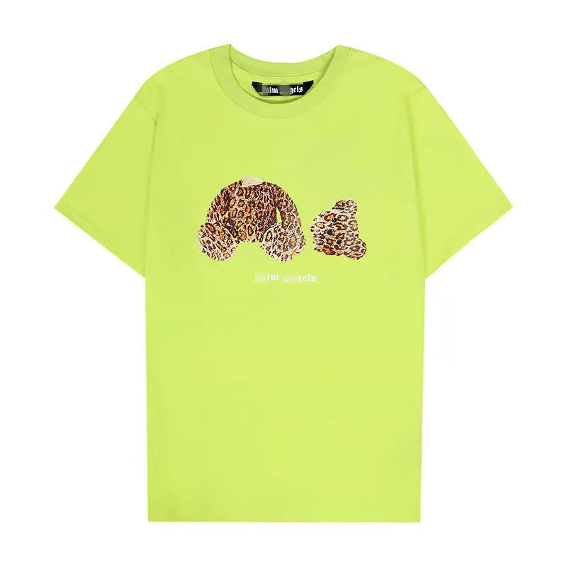 Palm Angels T Shirts Angel Leopard Print Broken Bear Letter Short Sleeve T-shirt for Men