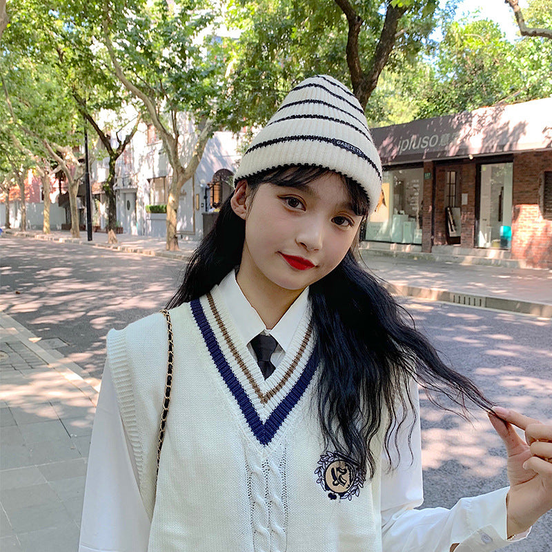 Toboggan Hat Women's Autumn and Winter Knitted Wool Ball Pullover Beanie Hat