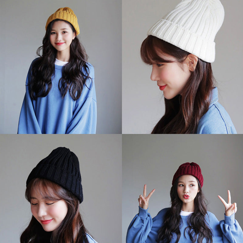 Toboggan Hat Knitted Woolen Cap Women's Autumn and Winter Beanie Hat