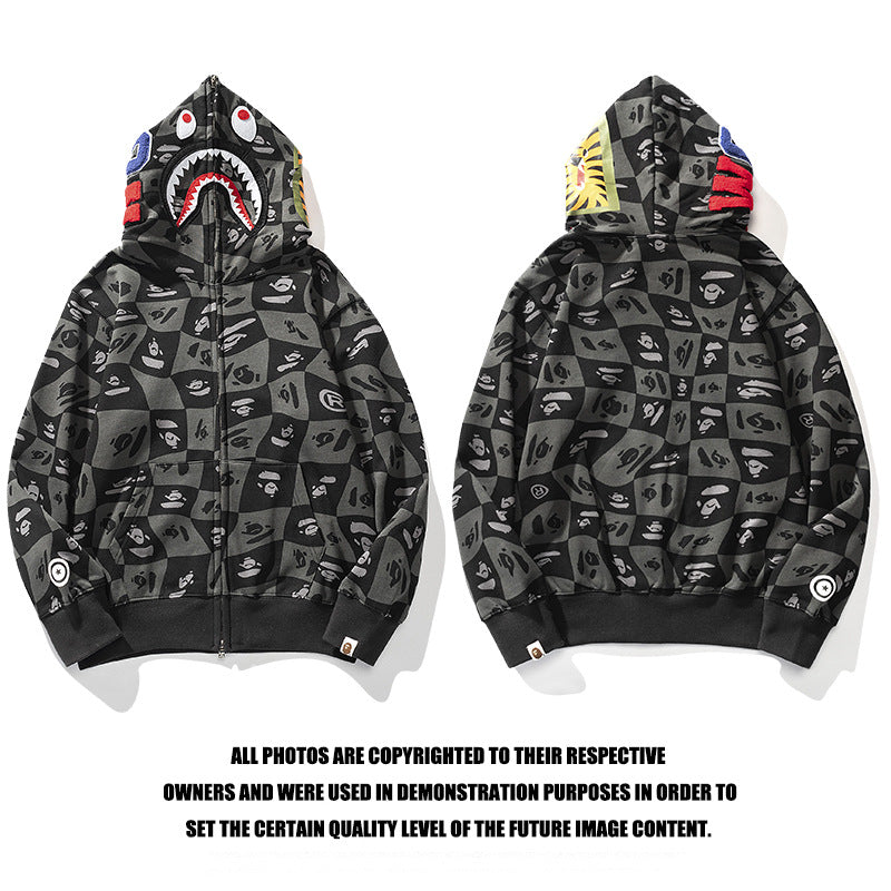 Bathing Ape Hoodie Autumn and Winter Ape Shaped Checkered Shark Cardigan Zipper Sweater Jacket