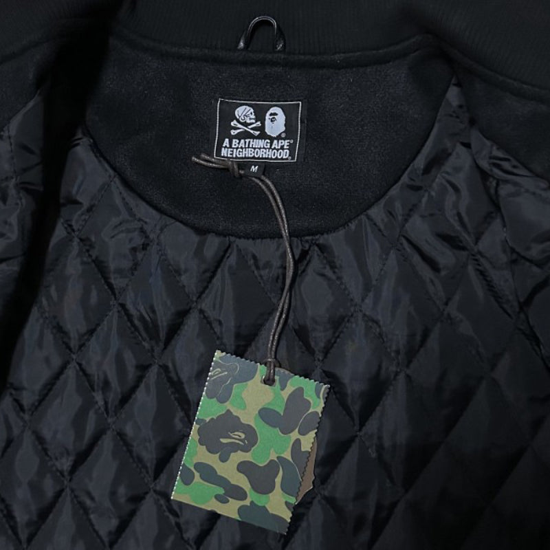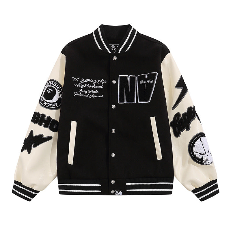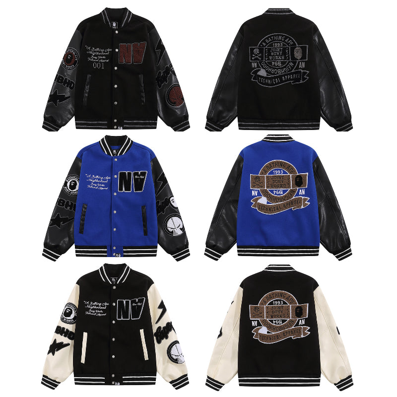 Bathing Ape jacket autumn and winter ape man letter embroidered patch leather sleeve baseball cotton jacket cotton coat
