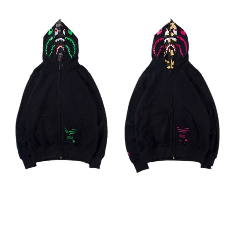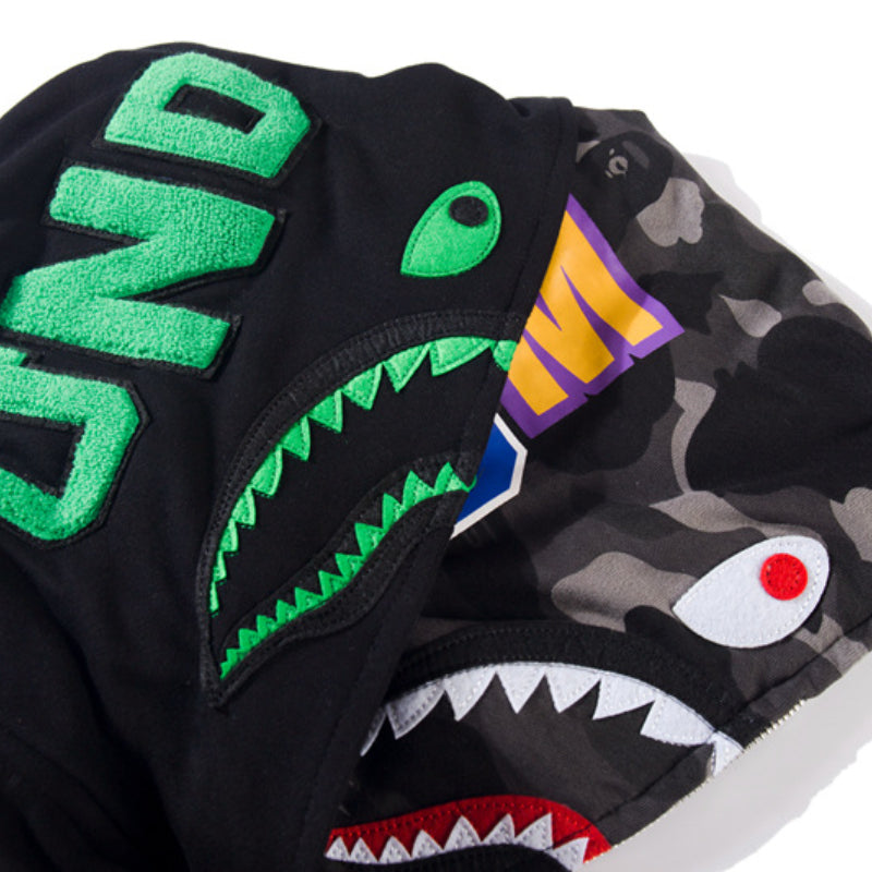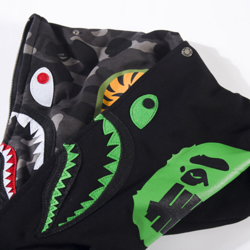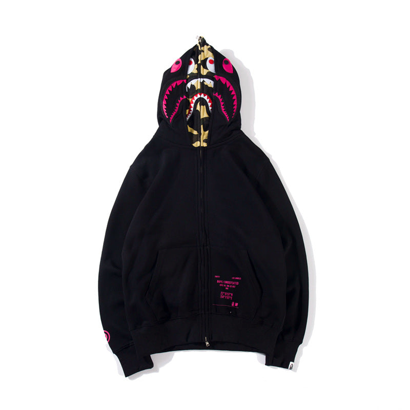 Bathing Ape Hoodie Camouflage Shark Jacket Men's Autumn and Winter Cardigan Zipper Embroidered Hooded Sweater