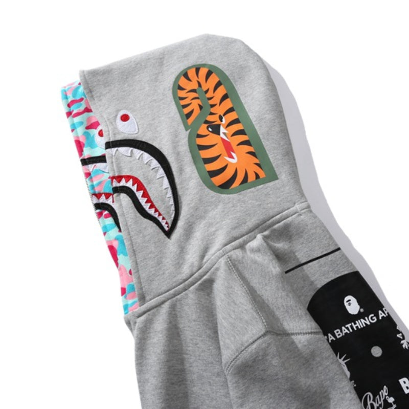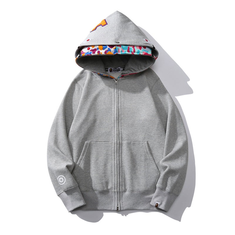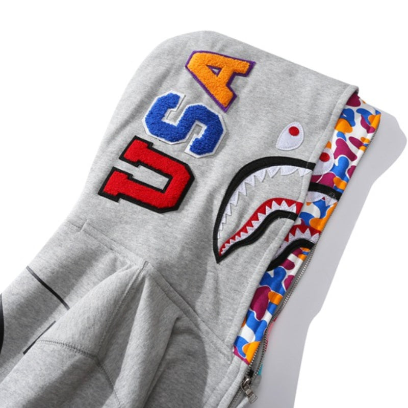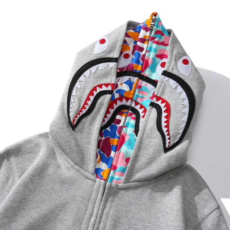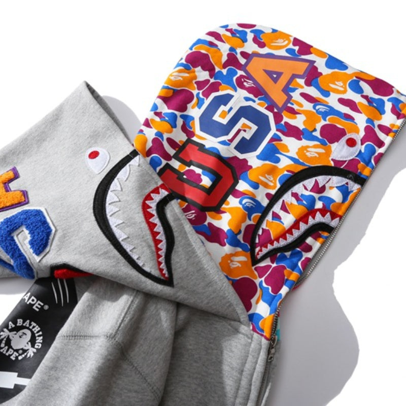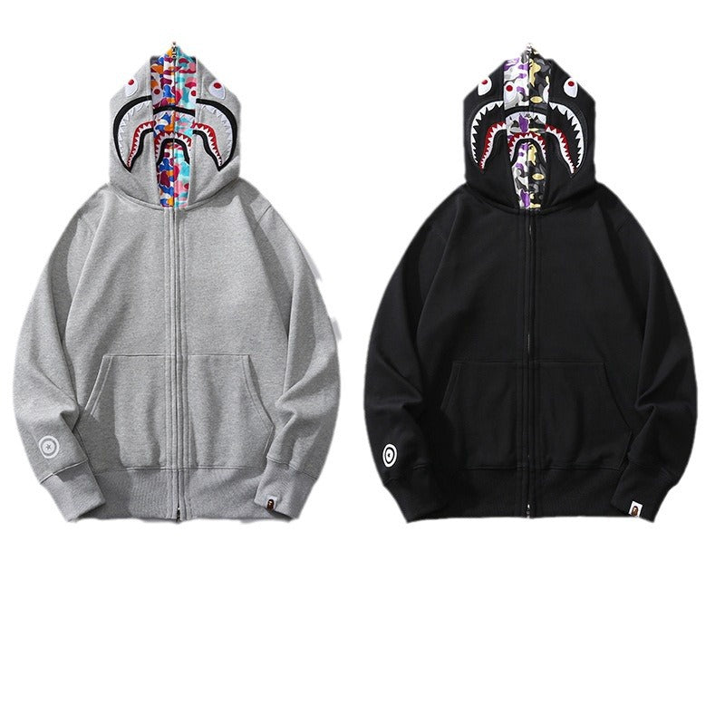 Bathing Ape Hoodie Shark Head Double Hood Camouflage Hooded Sweater Men's Autumn and Winter Cardigan Zipper Casual Couple Jacket