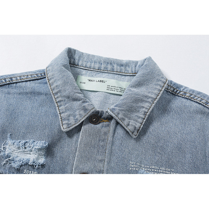 Autumn and Winter Men's Wear Ow Embroidery Hang Rope Washed Distressed Denim Coat jacket