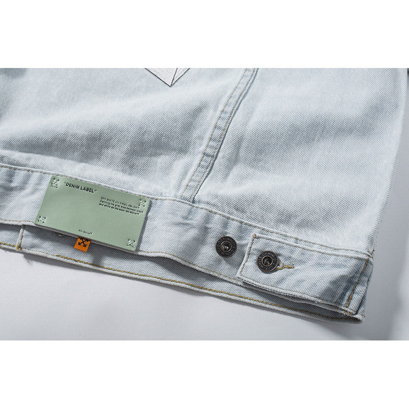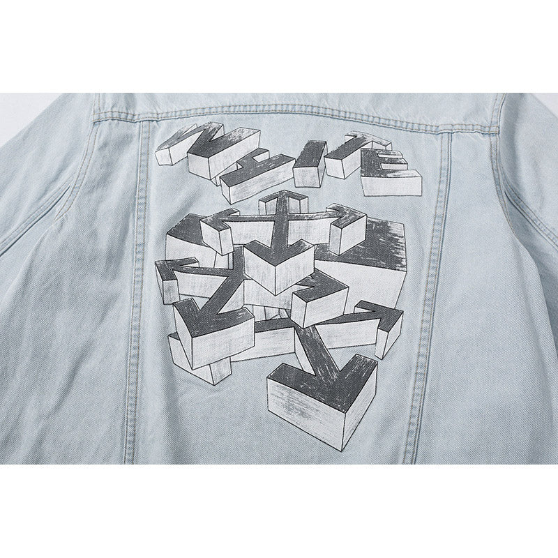 Autumn Men's 3D Hand-Painted Building Blocks Arrow Washed Old Denim Coat jacket