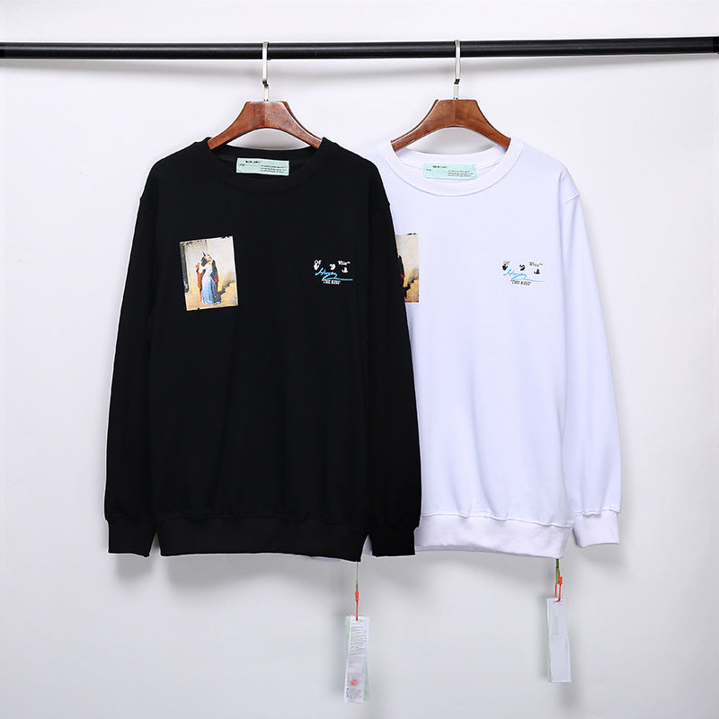 Autumn and Winter Back Men and Women Kiss Letter Printing Casual Men and Women All-Matching Thin round Neck Sweater sweatshirt