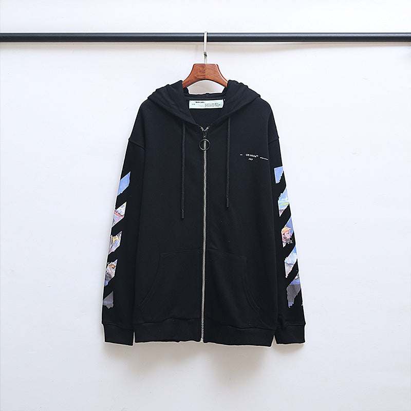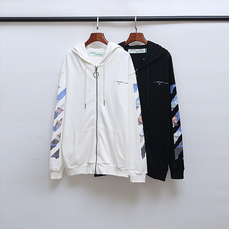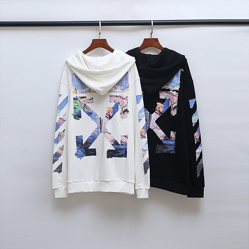 Autumn and Winter off Ow Oil Painting Zipper Coat Large Size Loose Male and Female Couples Wear Hooded Sweater hoodie