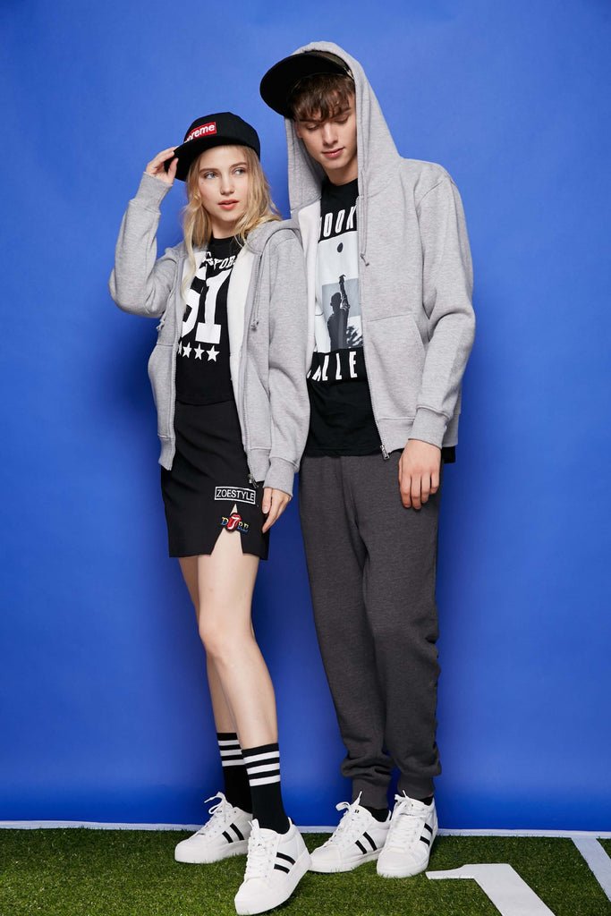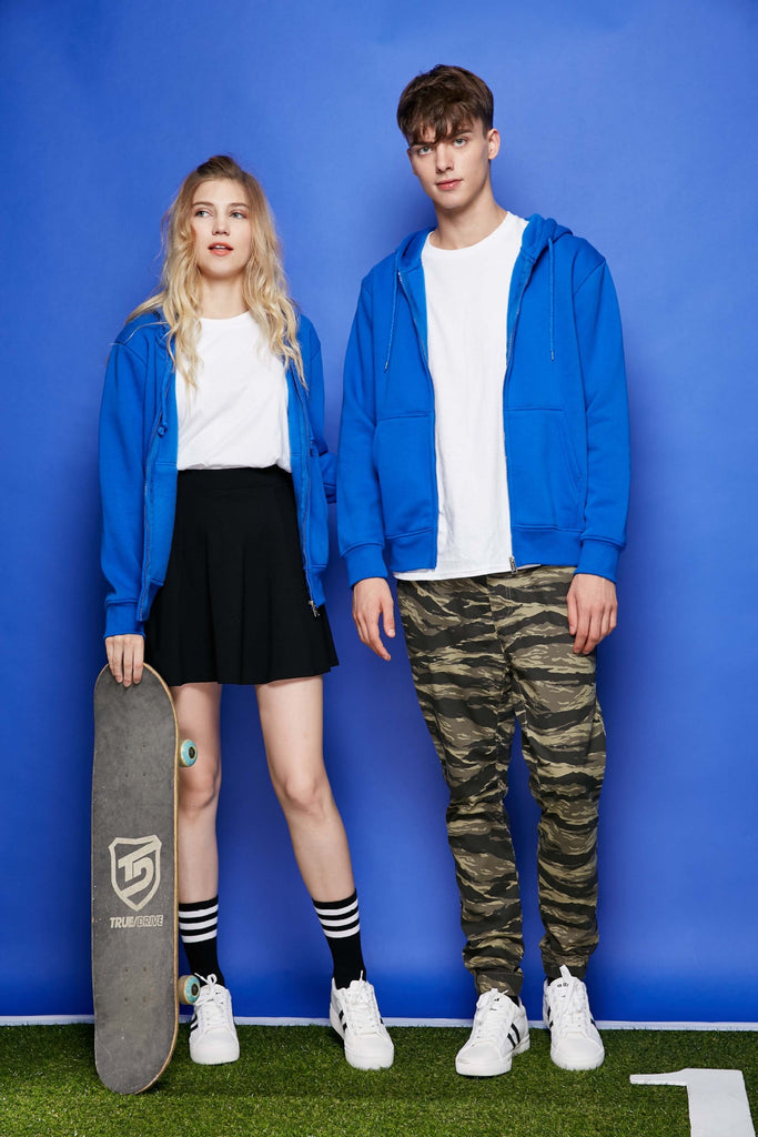 Black Zip Up Hoodie Polyester Cotton Interior Fleece Zipper Hooded Sweater Solid Color Cultural Shirt