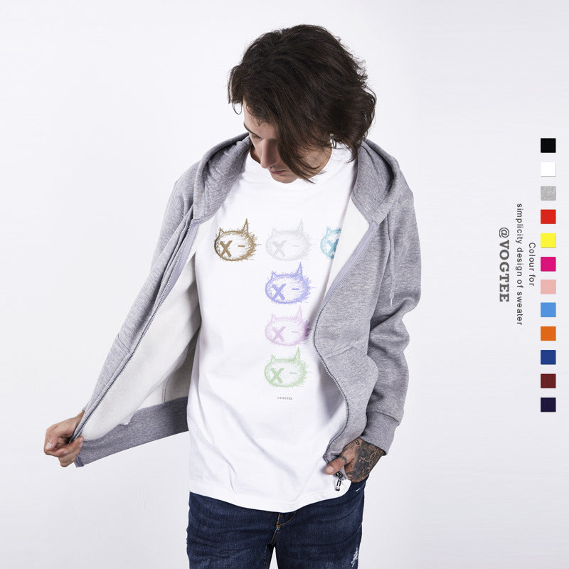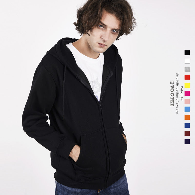 Black Zip Up Hoodie Pure Thickened Zipper Hooded Sweater Cardigans for Men and Women