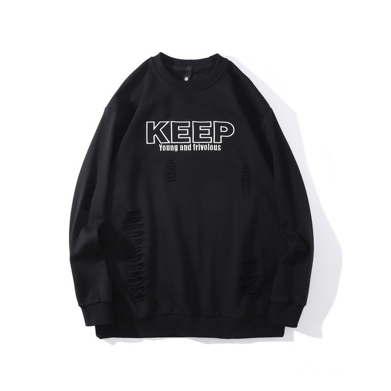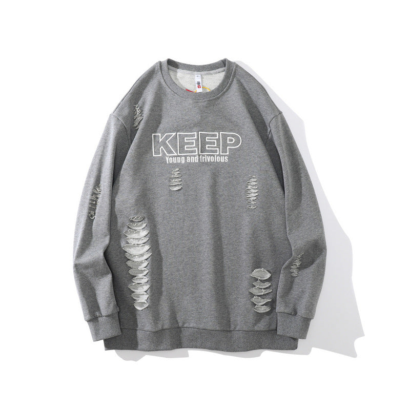 Mens Fall Outfits Autumn and Winter Men's Sweater Personal Leisure Loose Hanging Shoulder Ripped Sports Top
