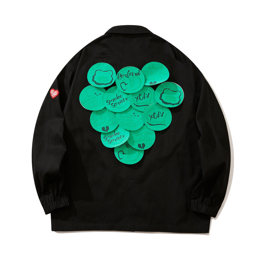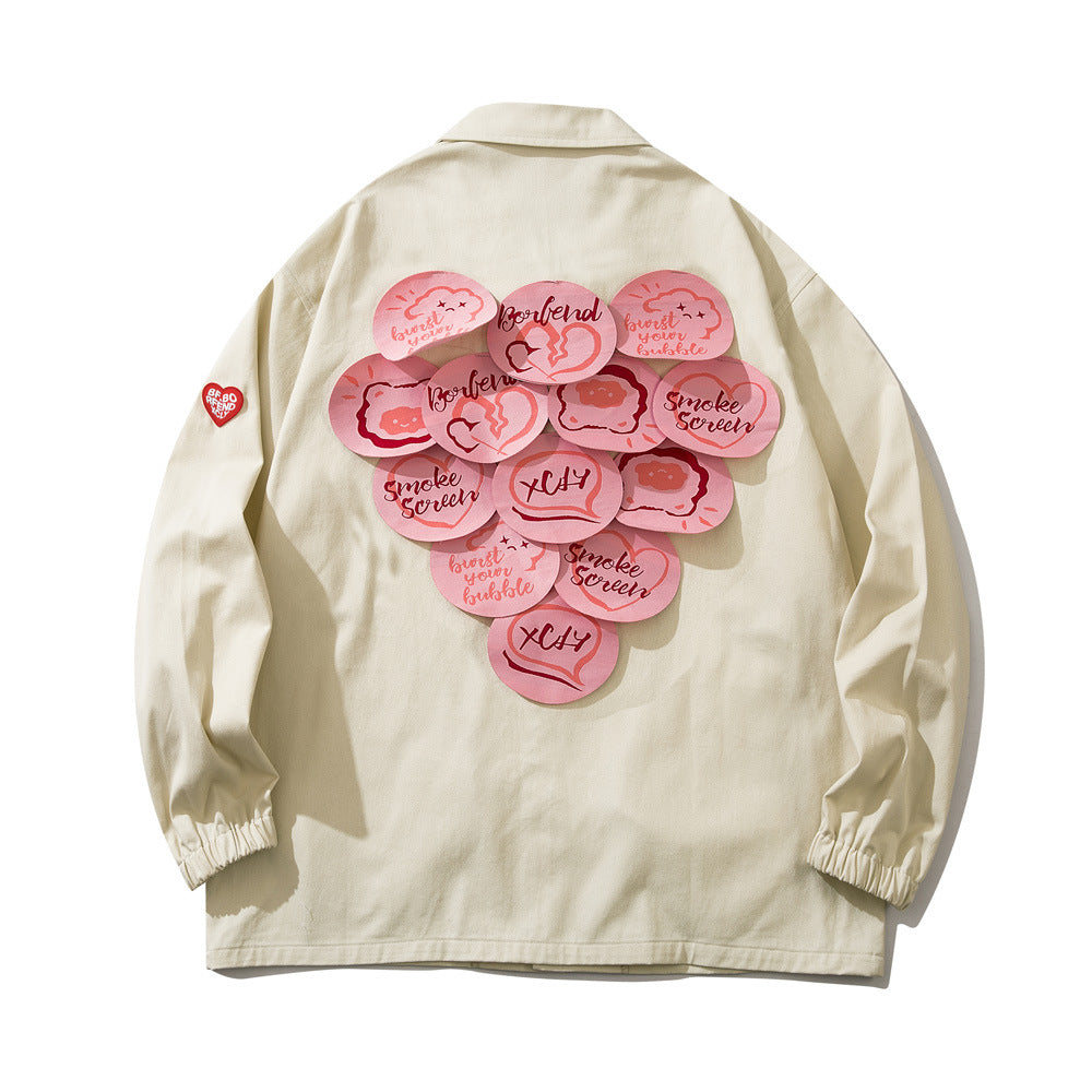 Beige Varsity Jacket Letter Print Patch Decoration Jacket Top Men Loose Lapels Casual Cargo Pants