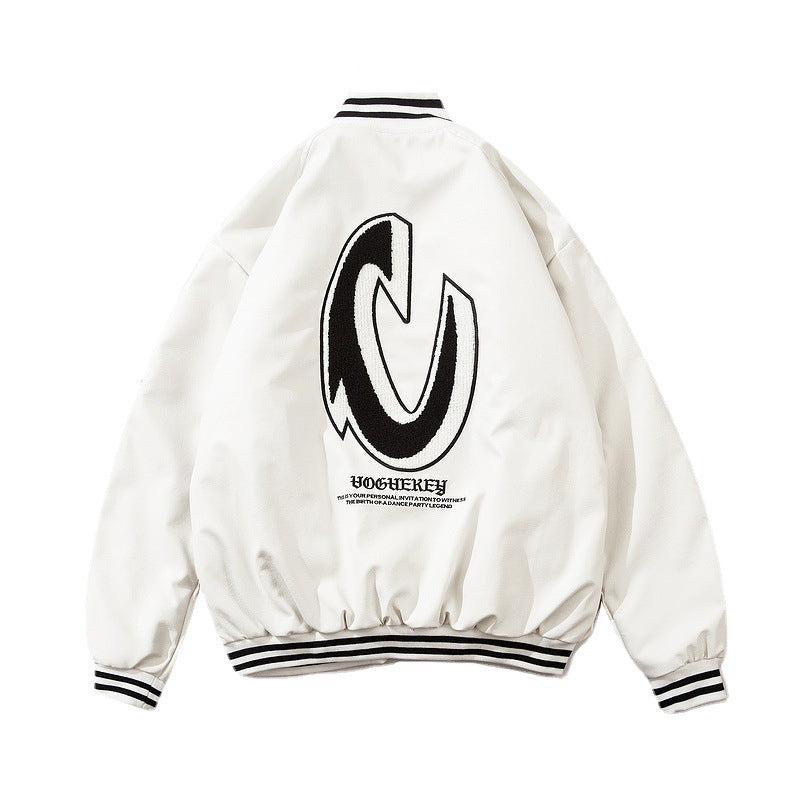 Beige Varsity Jacket Letter Embroidery Style Baggy Coat Men's and Women's Cotton-Padded Jacket Quilted Baseball Uniform Winter