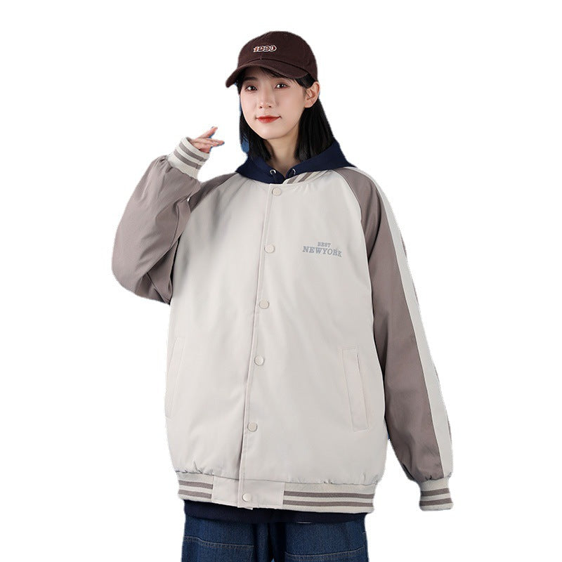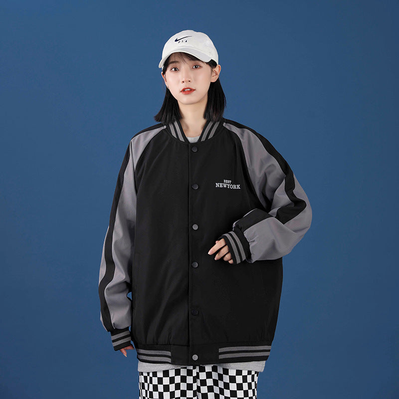 Black Varsity Jacket Stitching Autumn Men and Women Couple Flight Suit Embroidered Stand Collar Loose Baseball Uniform Jacket Coat