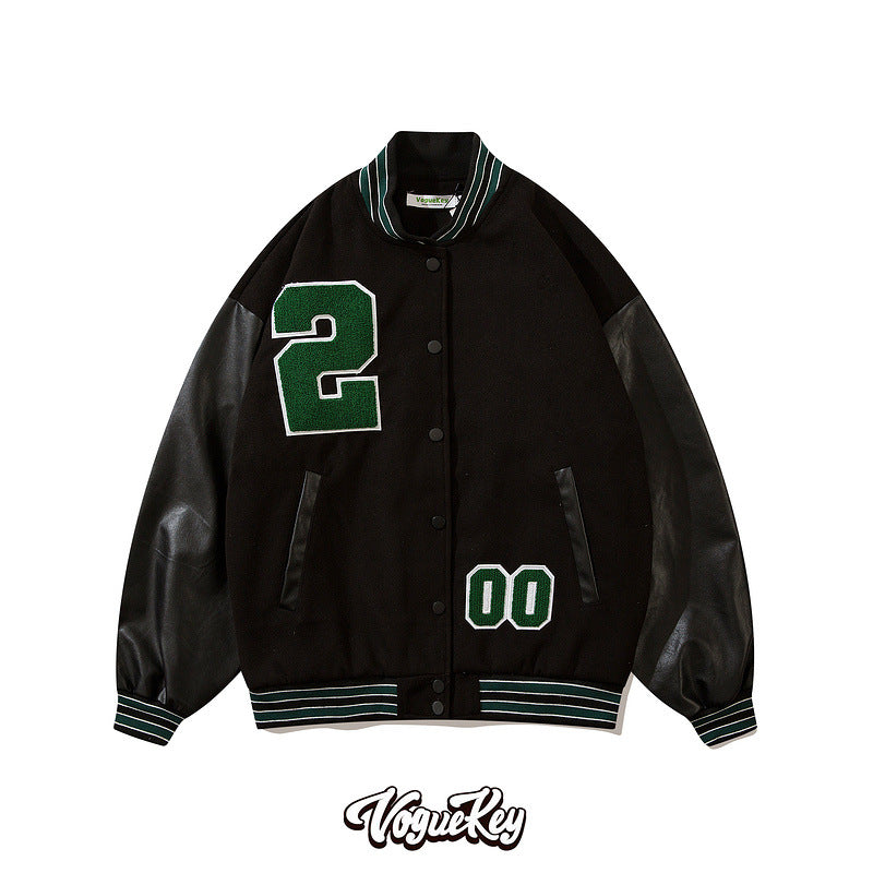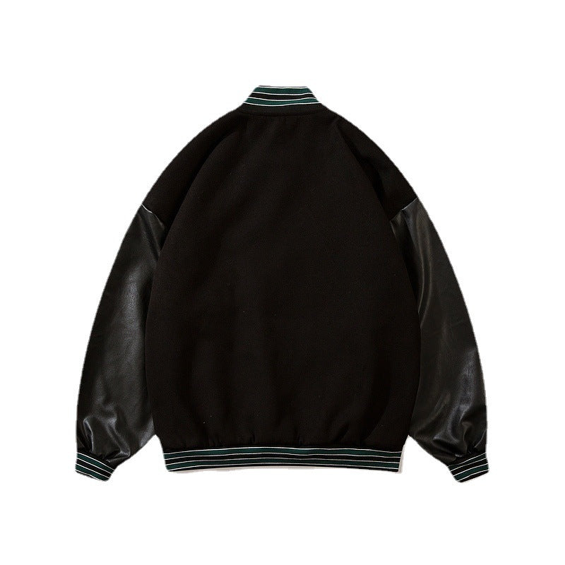 Black Varsity Jacket Student Long Sleeve Baggy Coat Men's Autumn Baseball Uniform Jacket