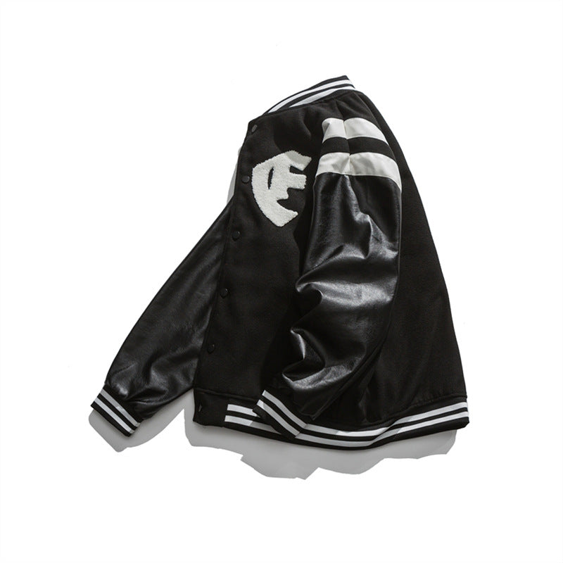 Black Varsity Jacket Autumn Baseball Uniform Stitching Loose Couple Coat Men