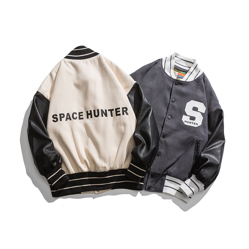 Black Varsity Jacket Autumn and Winter Baseball Uniform Men's Stitching Contrast Color Pilot Jacket Jacket