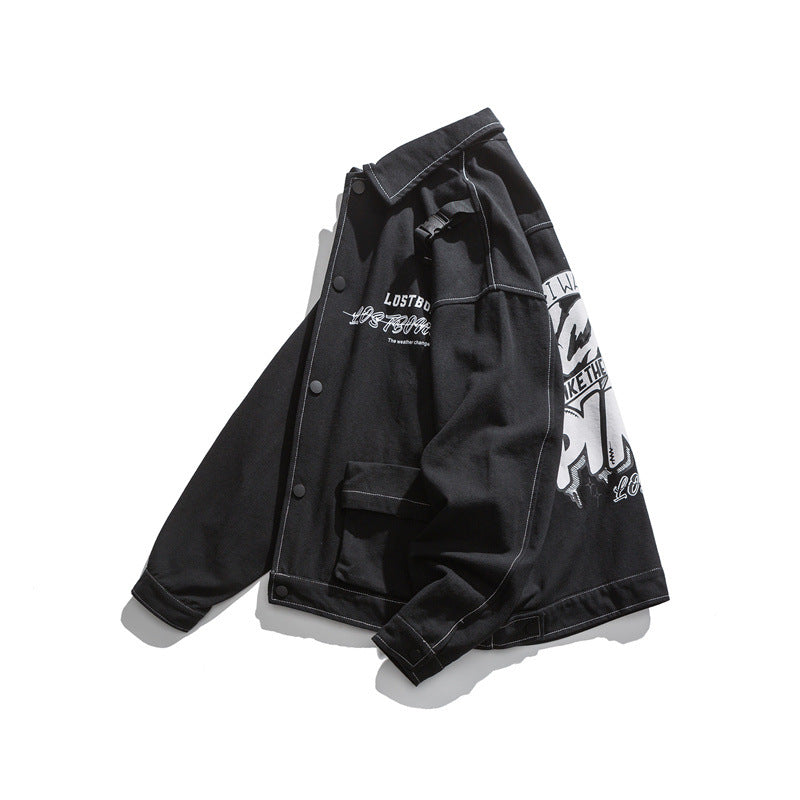 Black Varsity Jacket Autumn Jacket Men's Casual Thin Loose Top Coat