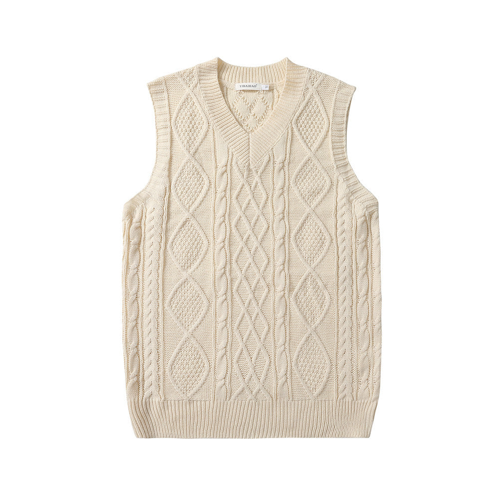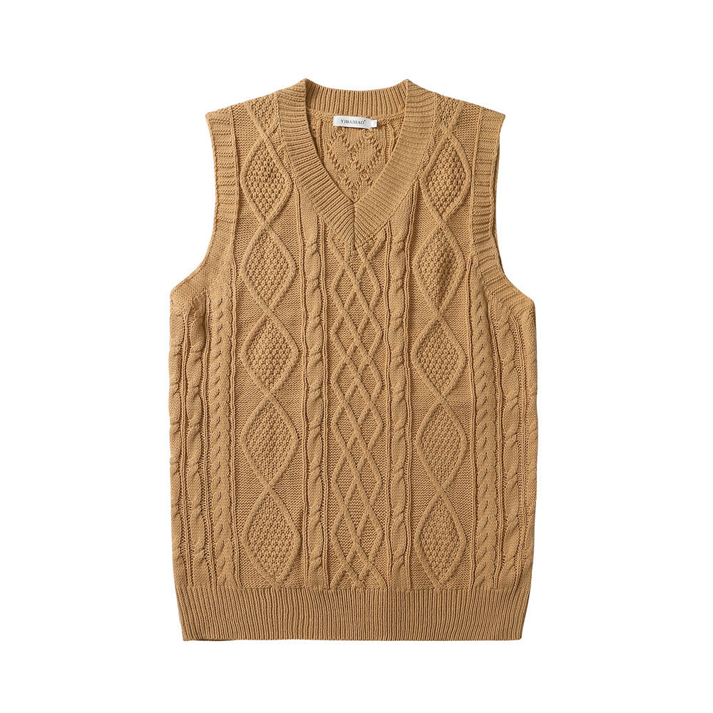 Men Sweater Vest Solid Color Sweater Vest Men's Loose V-neck Sleeveless Sweater BF Idle Style Waistcoat Vest