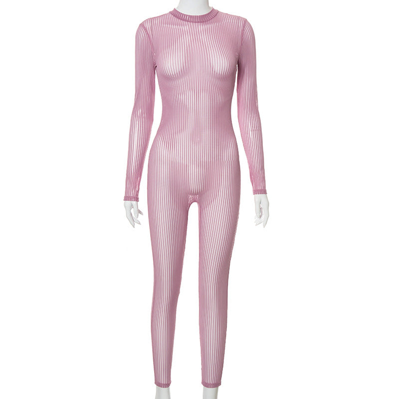 Autumn Hollow-out Long Sleeve Sexy See-through Back Zipper Trousers Jumpsuit for Women