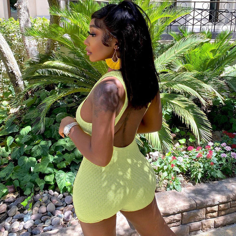 Autumn Backless High Waist Sports Skinny Hip Raise Shorts Jumpsuit